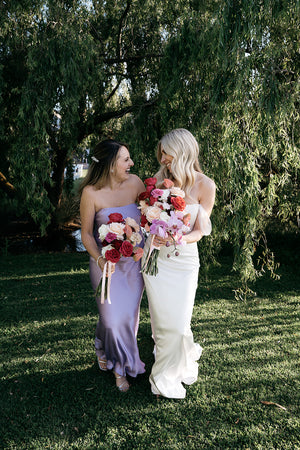 David and I were keen to have a relaxed winery style wedding. I really wanted a feminine and romantic colour palette which came through in our flowers and bridal party outfits.