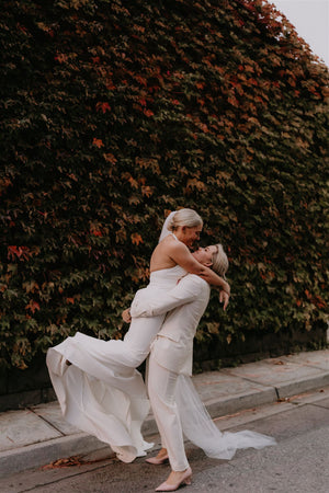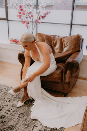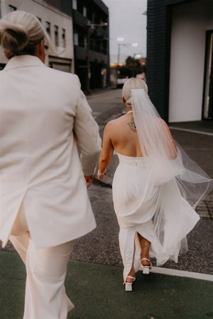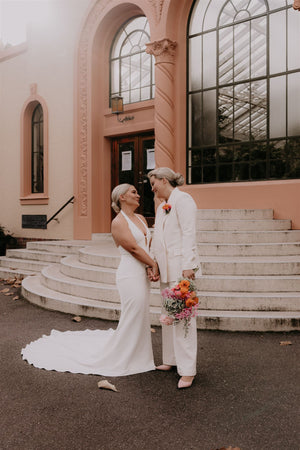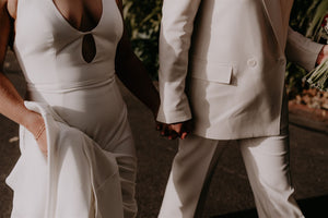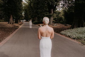 I did hunt around and try on a range of different styles of dresses. I knew that I wanted something sleek and modern, but wasn’t overly confident in which style would suit my body type the best. Love You More Bridal was the last appointment I had booked, and as soon as I met Kim and tried on her dresses I was confident I would be able to find something. I fell in love with my dress when I tried it on and knew it was the dress for me.