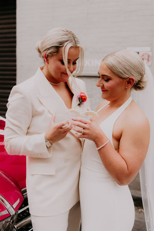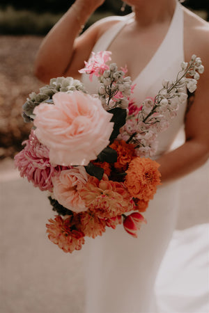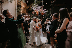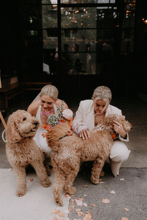 We really wanted our wedding to be an explosion of love/colour/moodiness/fun - a pretty fair representation of us as a couple. We managed to accomplish this brief by tying the overall aesthetic of our venue Rupert on Rupert with bright florals and table scapes.