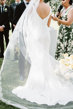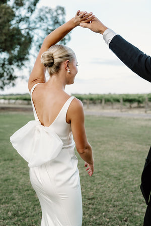 There were a number of dresses that were stunning and felt like me, but this particular dress had everything I was looking for. It felt like me (in the most elevated way), it was comfortable and fit the vibe of our wedding. With the addition of the veil and the bow, it just all felt like a complete picture and I knew it was the one.