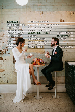 I loved our photoshoot with our photographer, Juliette. It really was the calm before the storm and she made us feel so relaxed. We did some photos at The Rochey where we met and had a drink with her. Took a relaxing walk for more portraits through Fitzroy and ended up at Piccolina for an ice-cream photoshoot. Really, it was more or less what we love to do on the weekends! Just add a wedding dress, suit and photographer.