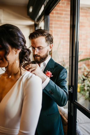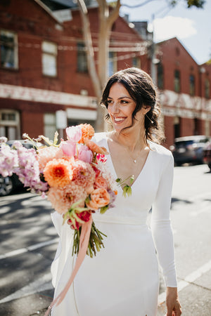 I already had a very strong feeling I would be getting my dress from Riva having viewed some of the dresses online beforehand. I knew I wanted a modern yet simple silhouette and definitely wanted sleeves. Being made in Melbourne was also an added bonus as I love shopping local!